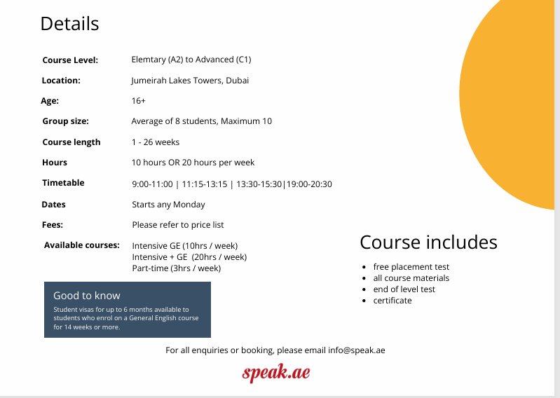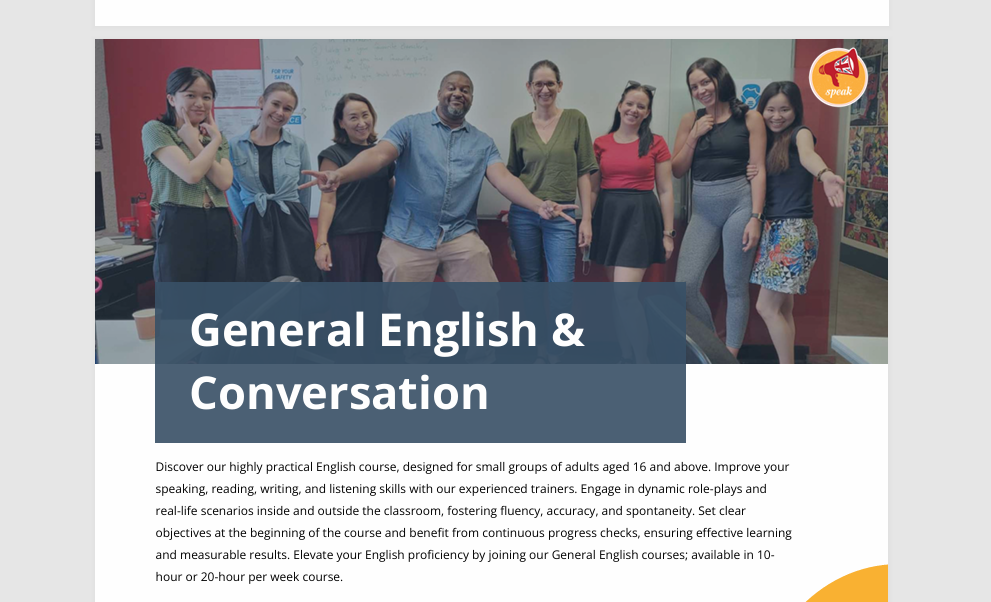 10人/一般8人,适合除入门级(A1)之外的所有级别,商务英语课程在晚上进行,每周 2 天,下午19:00-20:30